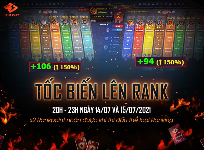 Hãy khởi động ngay những trận đấu nảy lửa và lên Rank thần tốc cùng EGOPLAY với sự kiện "Tốc biến lên Rank"