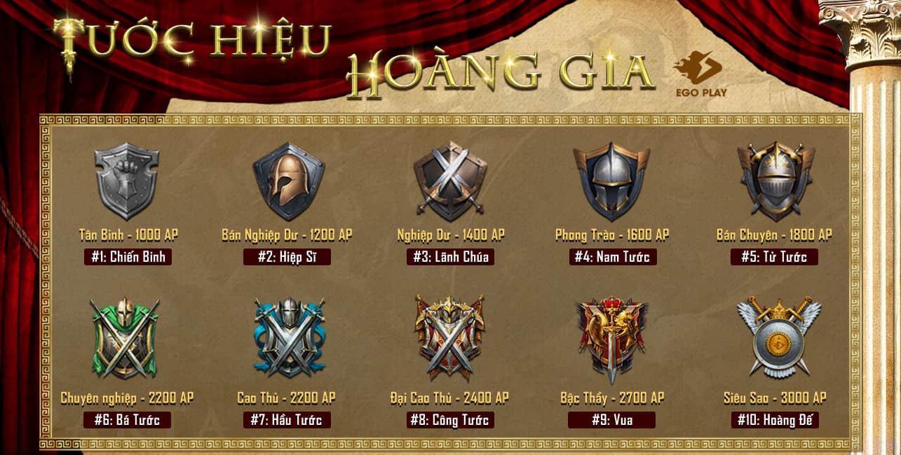 Hệ thống Tước hiệu Hoàng Gia cao quý tại Đấu Trường EGOPLAY