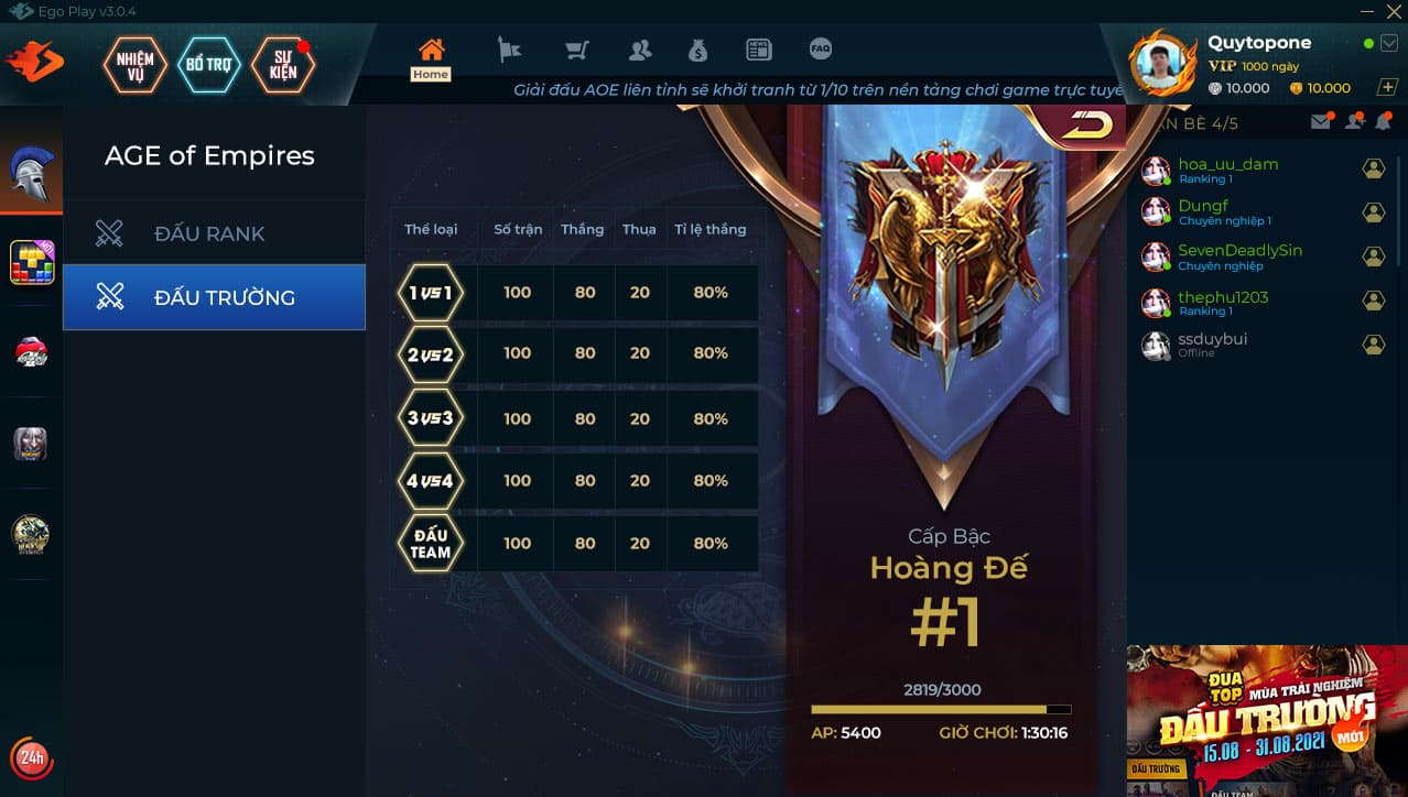 Hoàng Đế - Tước hiệu chí tôn, cao quý nhất tại Đấu Trường EGOPLAY